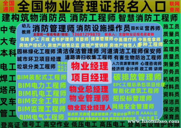 株洲物业经理项目经理物业管理师物业职业经理人电工焊工架子工高空作业叉车消防设施操作员